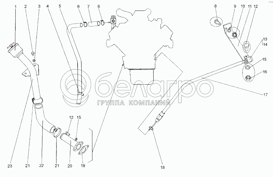 Каталог запасных частей к технике: МЗКТ-652511. Установка агрегатов системы смазки двигателя
