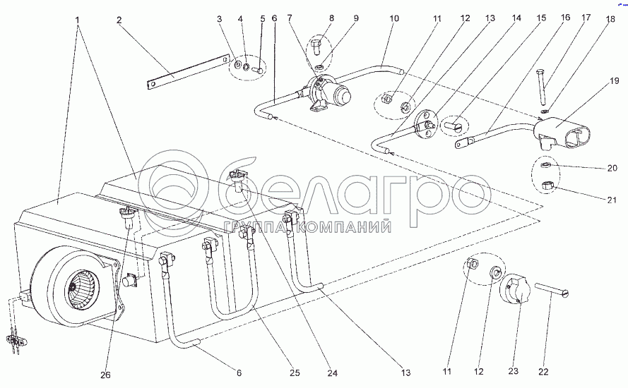 Каталог запасных частей к технике: МЗКТ-652511. Установка аккумуляторных батарей