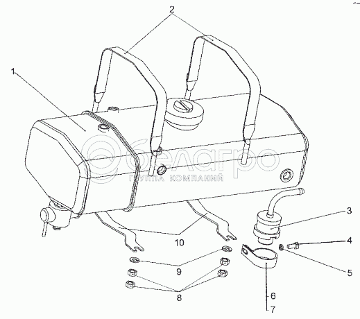 Каталог запасных частей к технике: МЗКТ-652511. Установка бачка расширительного и редукционного клапана