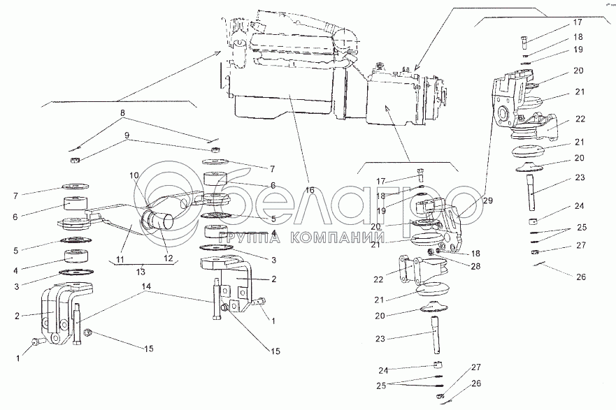 Каталог запасных частей к технике: МЗКТ-652511. Установка двигателя