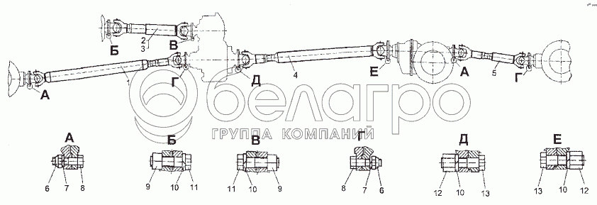 Каталог запасных частей к технике: МЗКТ-652511. Установка карданных валов