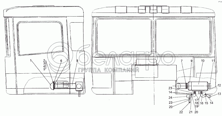 Каталог запасных частей к технике: МЗКТ-652511. Установка отопителя независимого действия