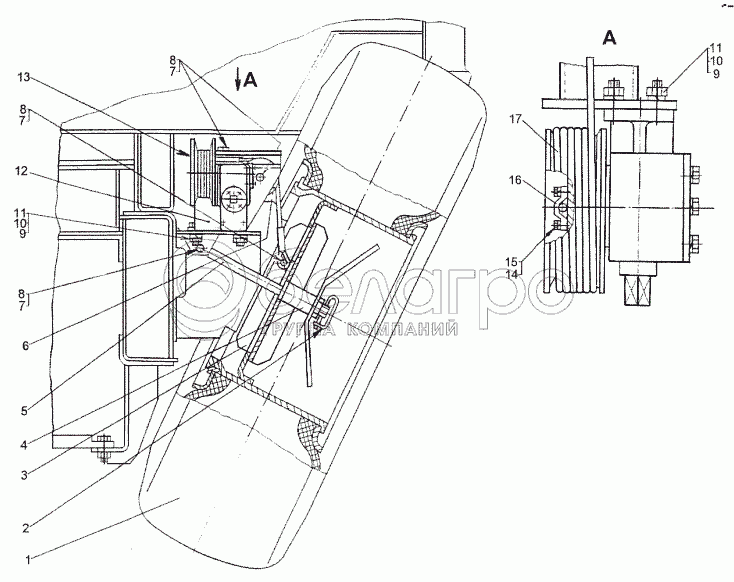 Каталог запасных частей к технике: МЗКТ-652511. Установка подъемника запасного колеса