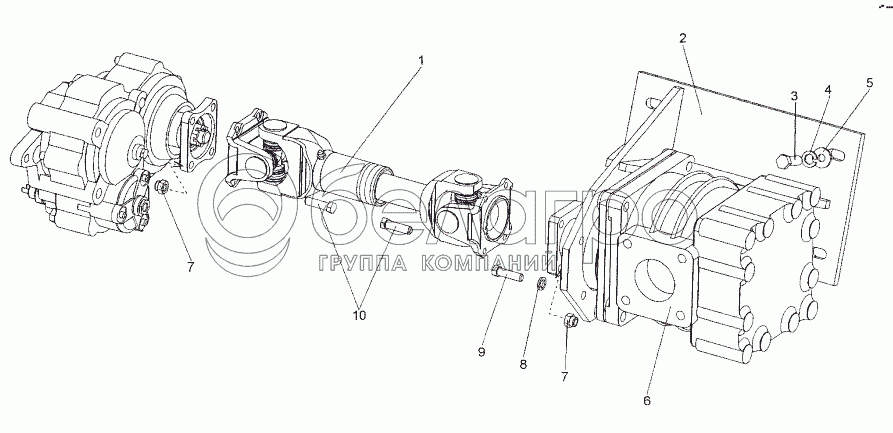 Каталог запасных частей к технике: МЗКТ-652511. Установка привода насоса