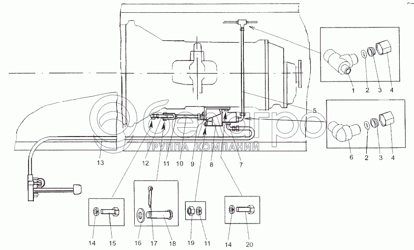 Каталог запасных частей к технике: МЗКТ-652511. Установка привода управления сцеплением