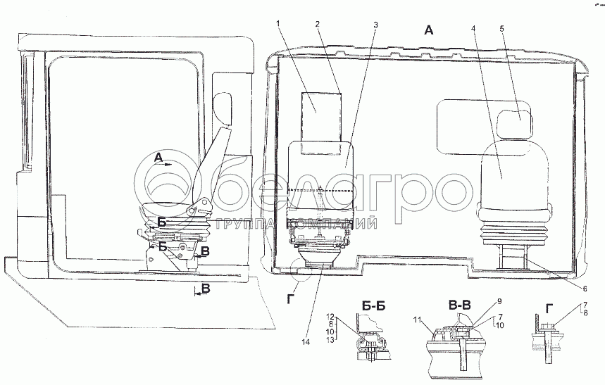 Каталог запасных частей к технике: МЗКТ-652511. Установка сидений