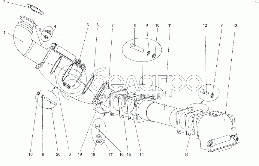 Каталог запасных частей к технике: МЗКТ-652511. Установка системы выпуска газов