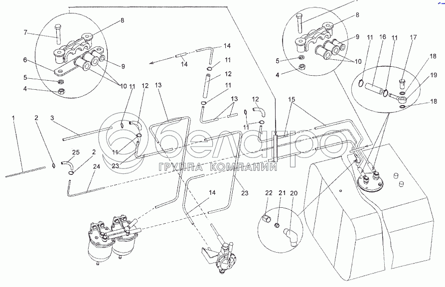 Каталог запасных частей к технике: МЗКТ-652511. Установка топливопроводов