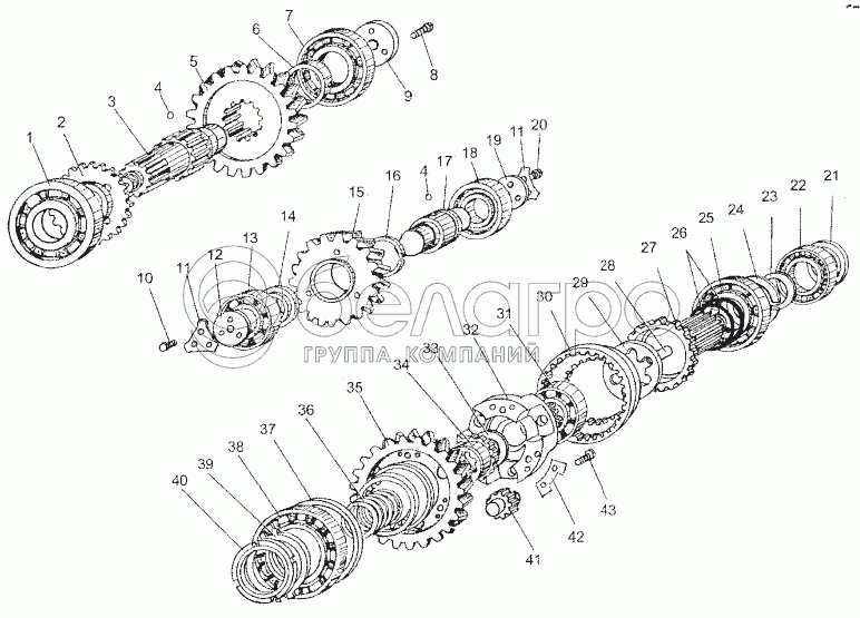 Каталог запасных частей к технике: МЗКТ-652511. Валы и шестерни раздаточной коробки