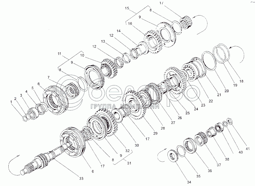 Каталог запасных частей к технике: МЗКТ-652511. Валы и шестерни вторичного вала