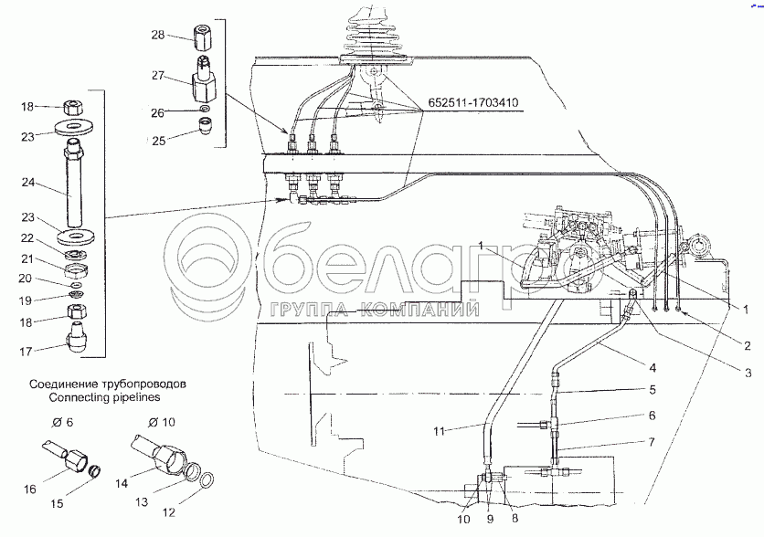 Каталог запасных частей к технике: МЗКТ-652511. Воздухопроводы и шланги