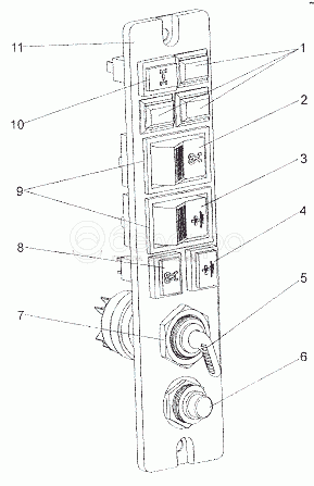 Каталог запасных частей к технике: МЗКТ-6527. Панель переключателей 7402-3800015, Э7402-3800015-10