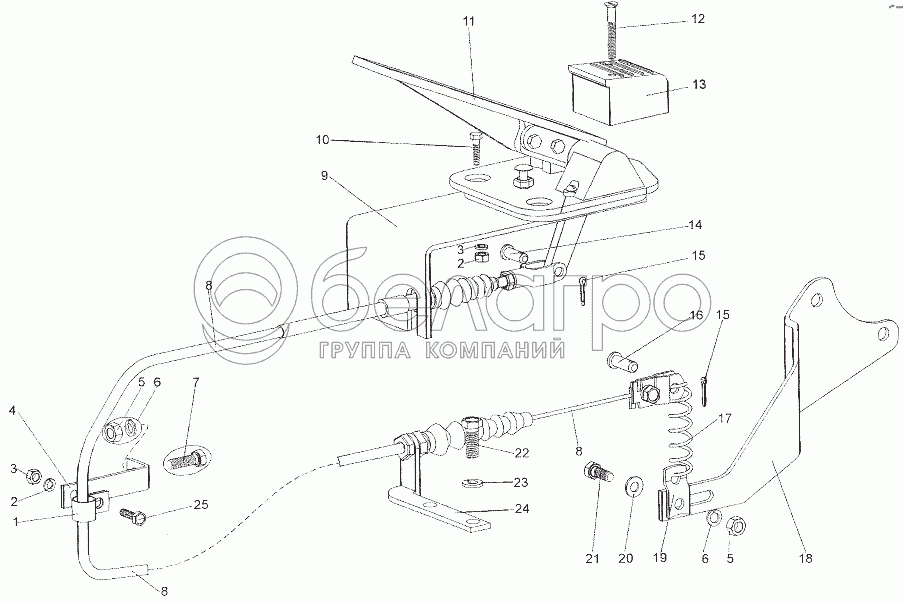 Каталог запасных частей к технике: МЗКТ-6527. Привод управления подачей топлива