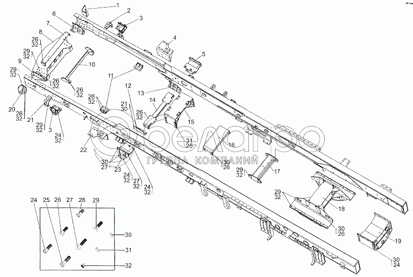 Каталог запасных частей к технике: МЗКТ-6527. Рама 7402-2800012