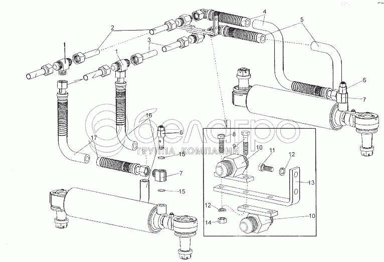 Каталог запасных частей к технике: МЗКТ-6527. Трубопроводы к цилиндрам