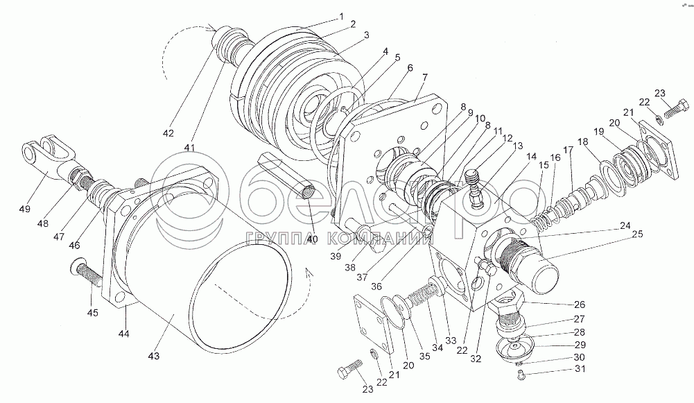 Каталог запасных частей к технике: МЗКТ-6527. Усилитель пневмогидравлический 65151-1609200-10