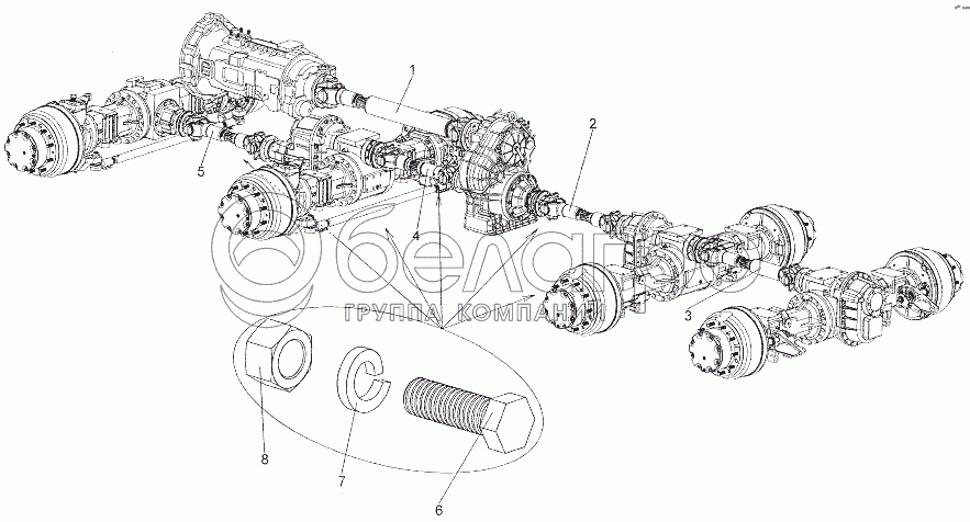 Каталог запасных частей к технике: МЗКТ-6527. Установка карданных валов