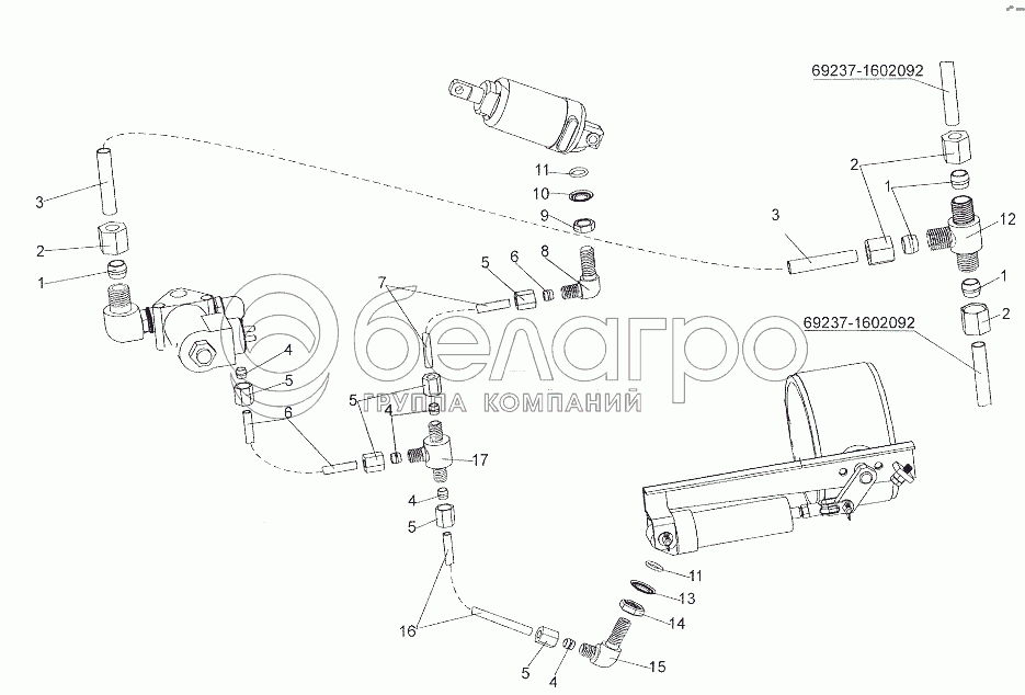 Каталог запасных частей к технике: МЗКТ-6527. Установка трубопроводов моторного тормоза