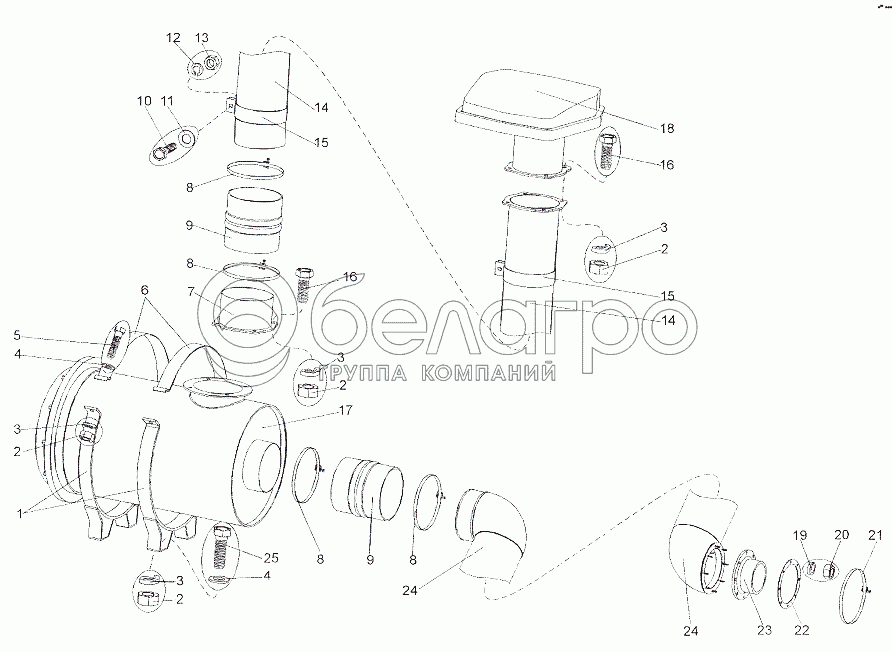 Каталог запасных частей к технике: МЗКТ-6527. Установка воздухоочистителя