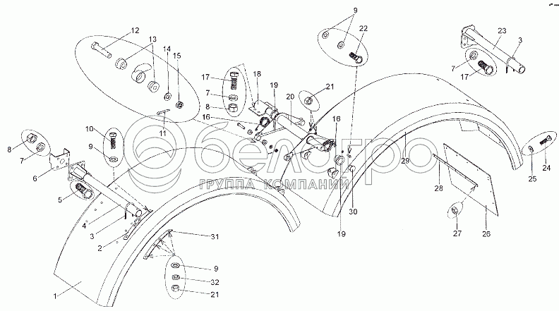 Каталог запасных частей к технике: МЗКТ-6527. Установка задних крыльев