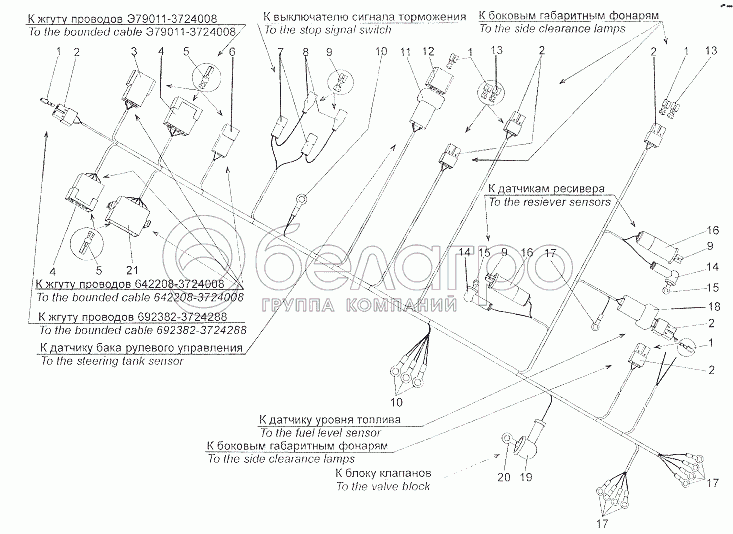 Каталог запасных частей к технике: МЗКТ-6527. Жгут проводов Э79011-3724580
