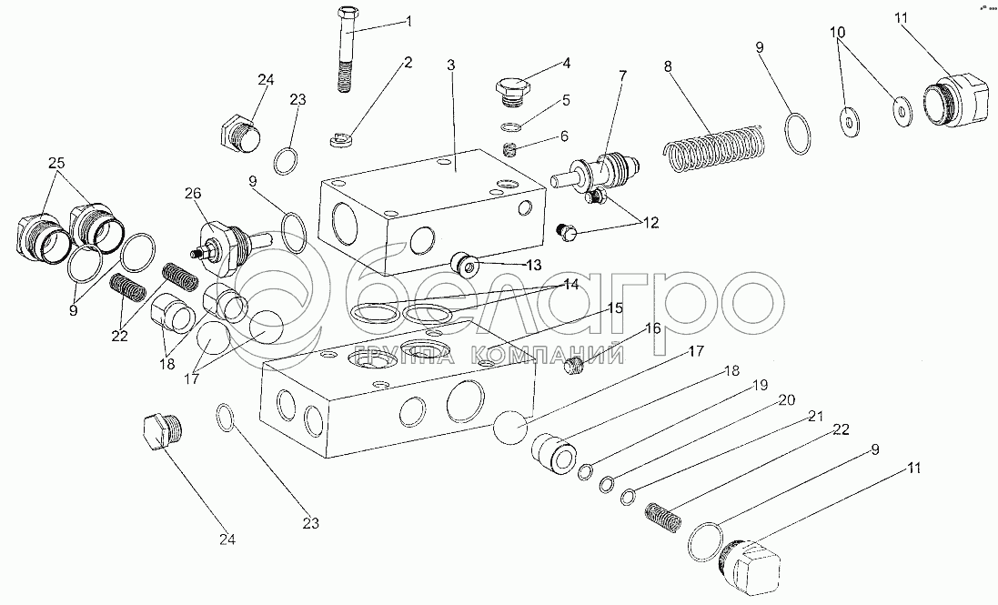 Каталог запасных частей к технике: МЗКТ-700600-011. Блок клапанов 700600-3420010