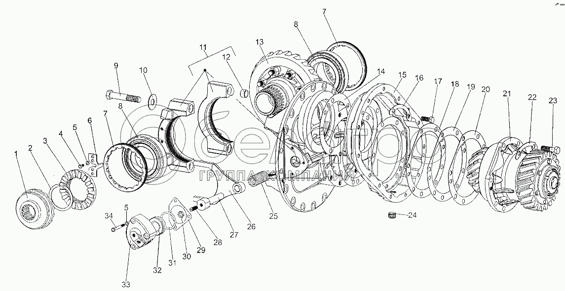 Каталог запасных частей к технике: МЗКТ-700600-011. Главная передача редуктора 7301-2322010