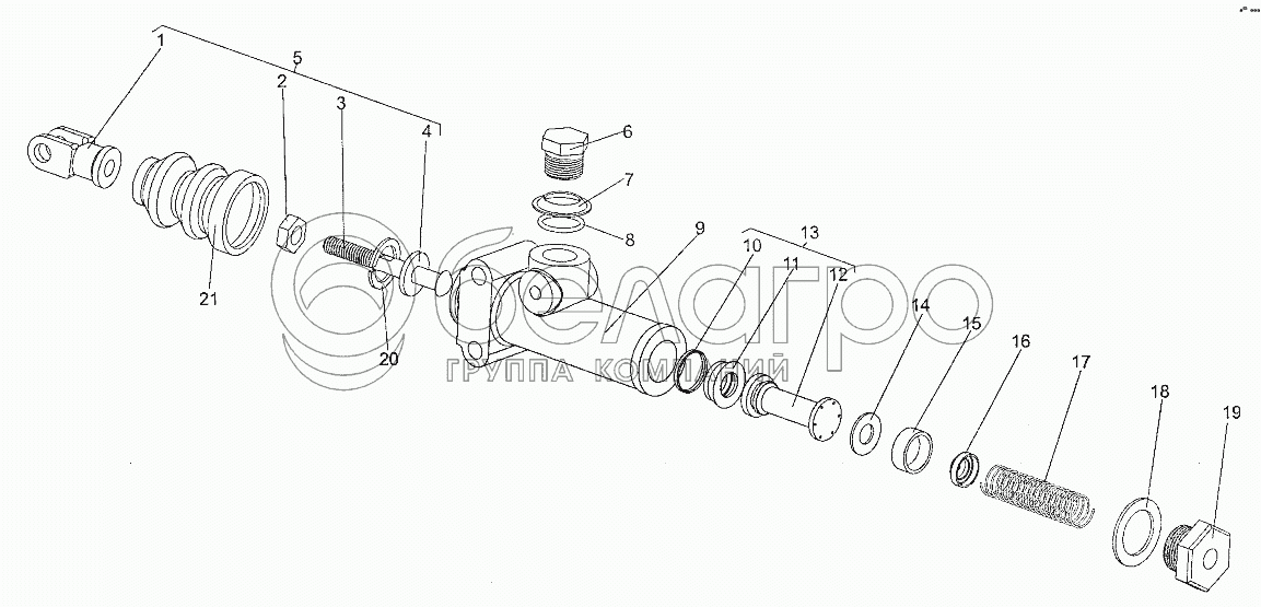 Каталог запасных частей к технике: МЗКТ-700600-011. Подпедальный цилиндр 69237-1602300