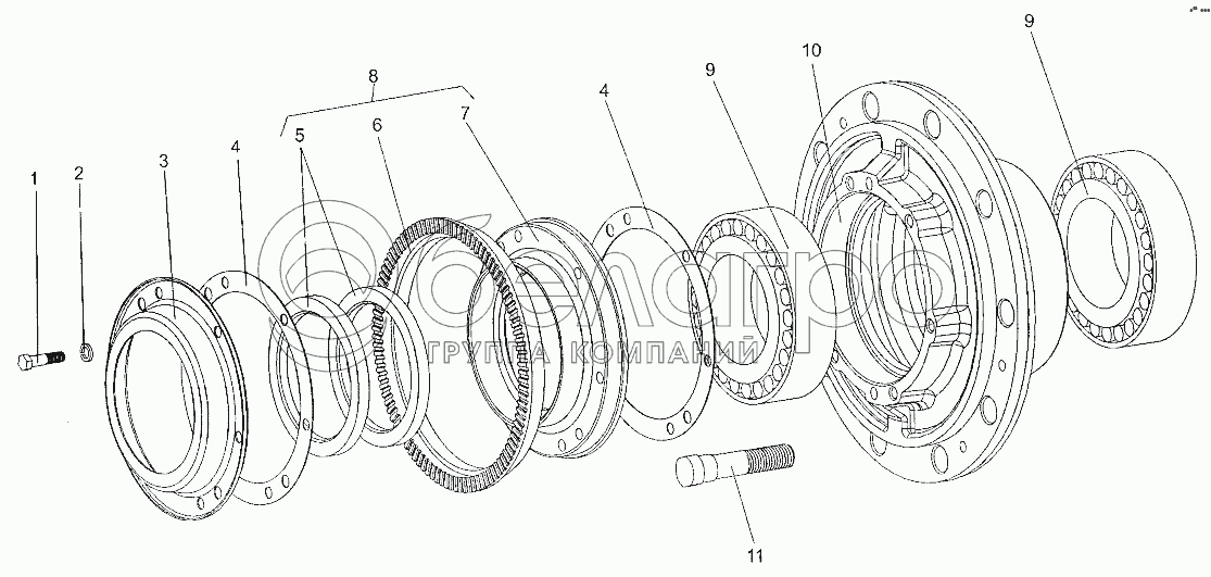 Каталог запасных частей к технике: МЗКТ-700600-011. Ступица заднего колеса 6923-3104010-10