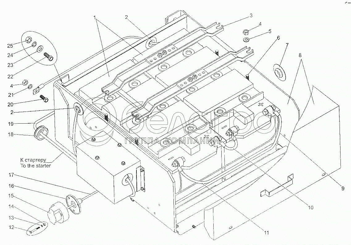 Каталог запасных частей к технике: МЗКТ-700600-011. Установка аккумуляторных батарей и контейнера