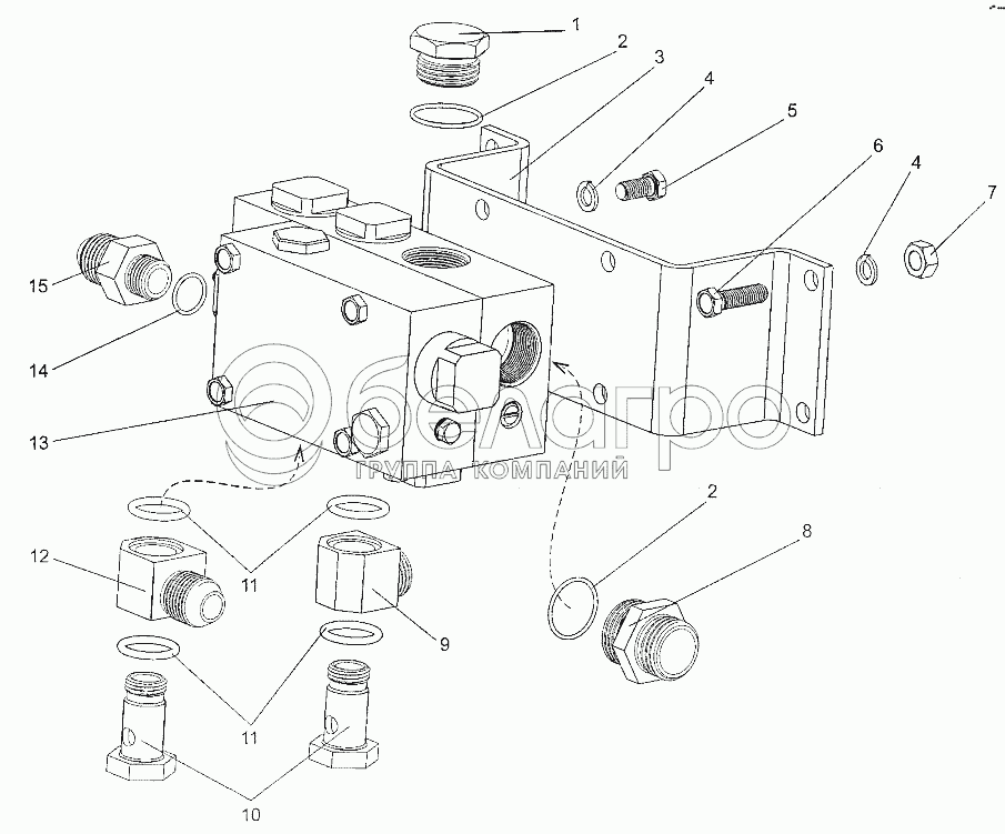 Каталог запасных частей к технике: МЗКТ-700600-011. Установка блока клапанов
