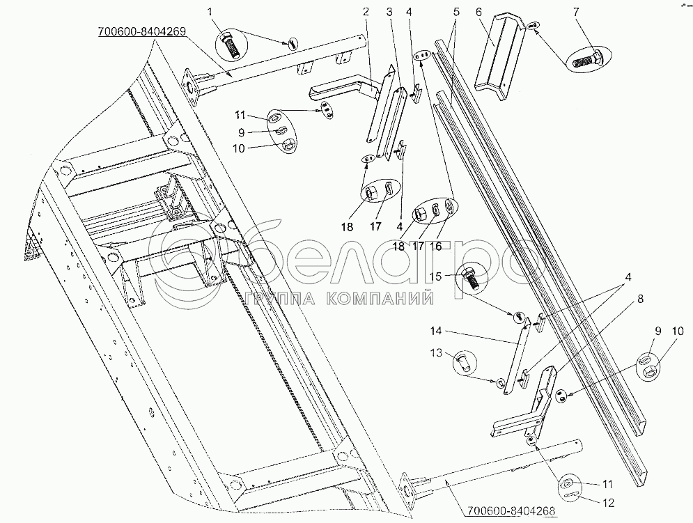 Каталог запасных частей к технике: МЗКТ-700600-011. Установка бокового ограждения