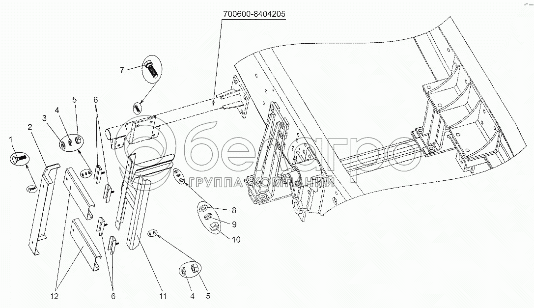 Каталог запасных частей к технике: МЗКТ-700600-011. Установка бокового ограждения
