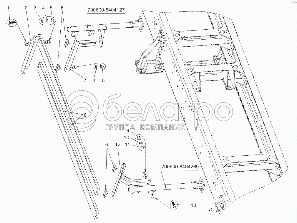 Каталог запасных частей к технике: МЗКТ-700600-011. Установка бокового ограждения