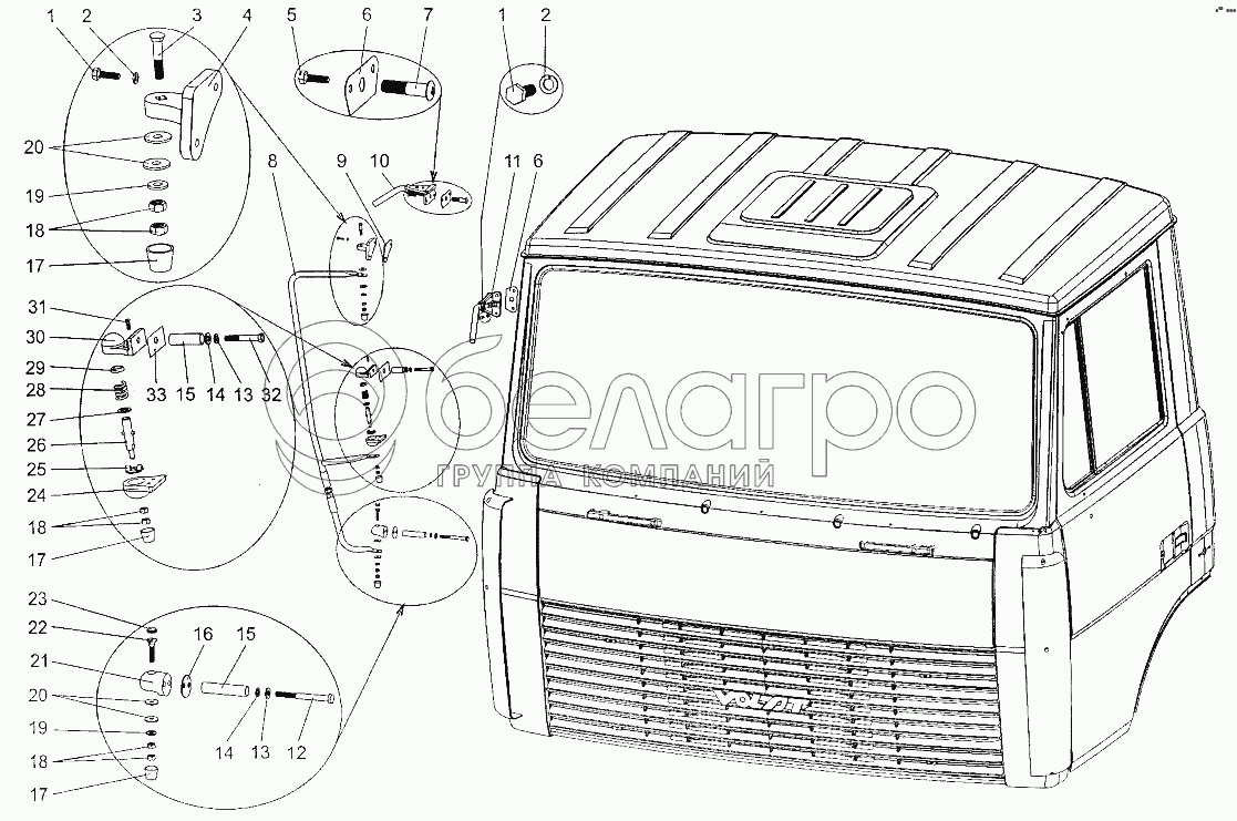 Каталог запасных частей к технике: МЗКТ-700600-011. Установка держателей зеркал