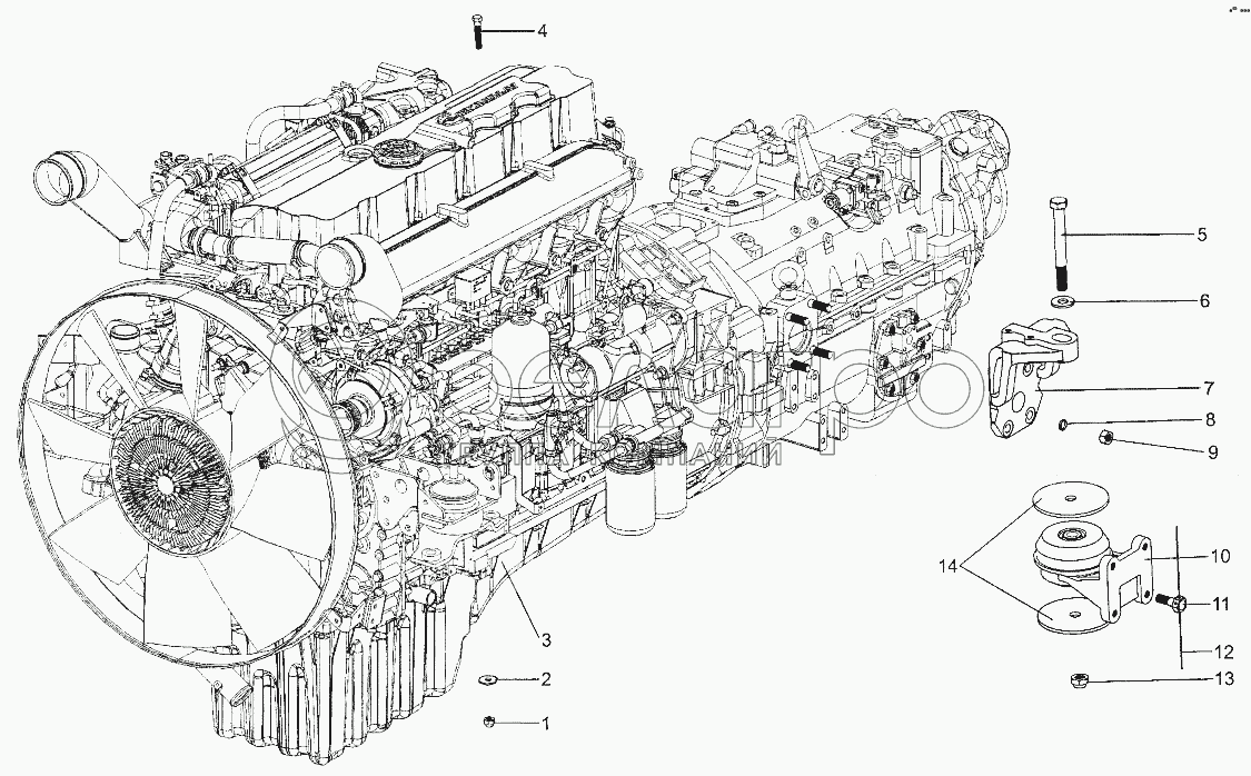 Каталог запасных частей к технике: МЗКТ-700600-011. Установка двигателя