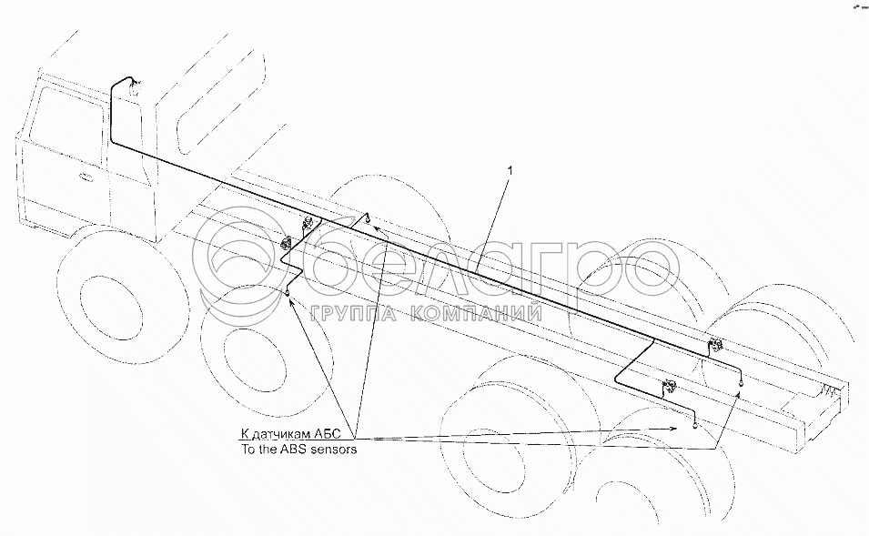 Каталог запасных частей к технике: МЗКТ-700600-011. Установка электрооборудования АБС на шасси