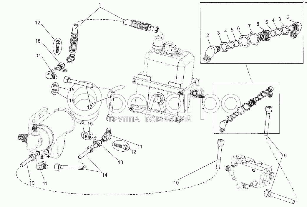 Каталог запасных частей к технике: МЗКТ-700600-011. Установка гидросистемы рулевого управления