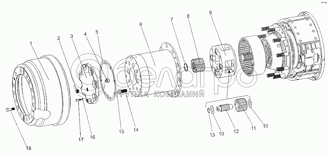 Каталог запасных частей к технике: МЗКТ-700600-011. Установка колесной передачи мостов