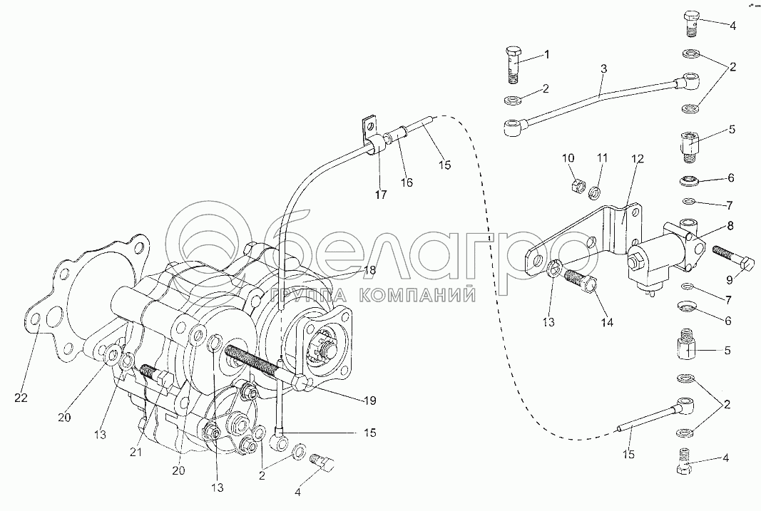 Каталог запасных частей к технике: МЗКТ-700600-011. Установка коробки отбора мощности