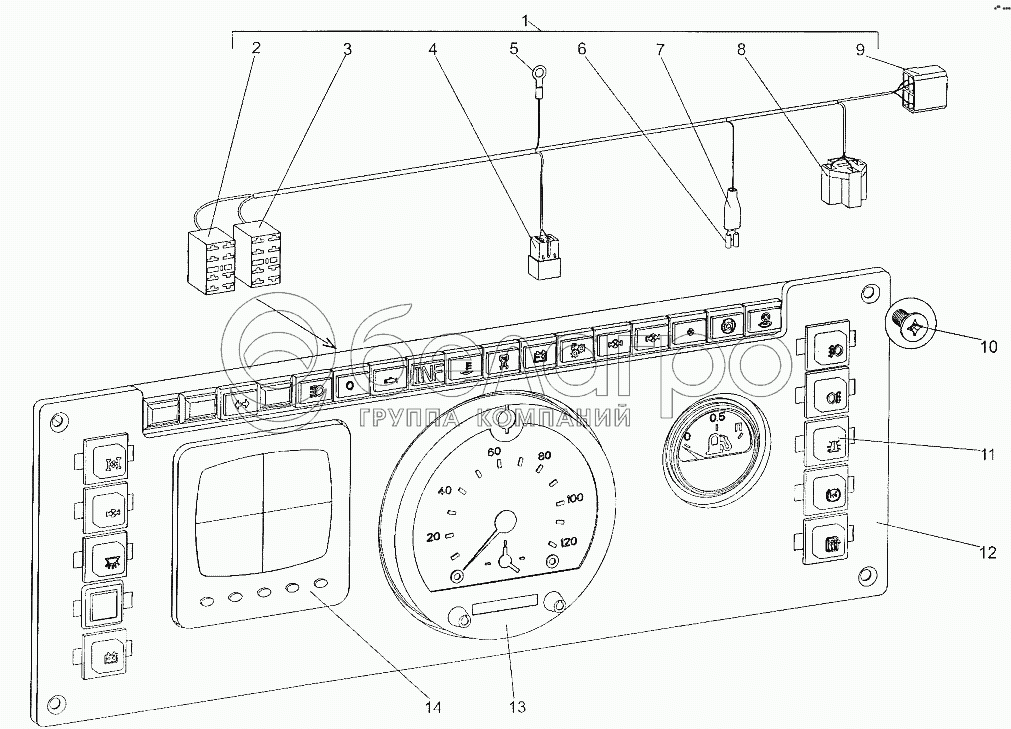 Каталог запасных частей к технике: МЗКТ-700600-011. Установка основной панели приборов