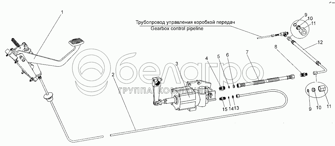 Каталог запасных частей к технике: МЗКТ-700600-011. Установка привода управления сцеплением