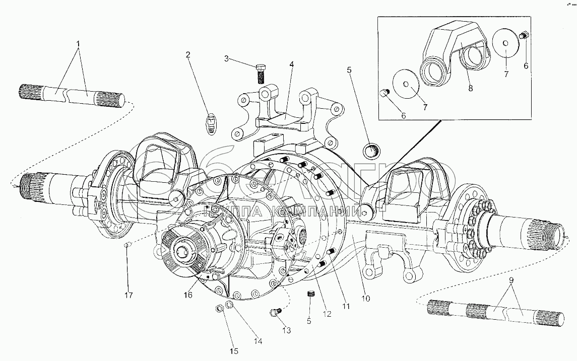 Каталог запасных частей к технике: МЗКТ-700600-011. Установка редуктора заднего моста