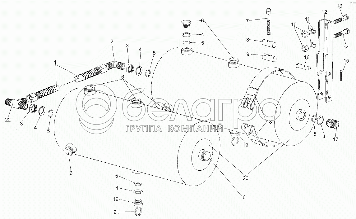 Каталог запасных частей к технике: МЗКТ-700600-011. Установка ресиверов заднего тормозного контура