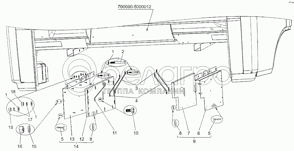 Каталог запасных частей к технике: МЗКТ-700600-011. Установка термошумоизоляции оперения
