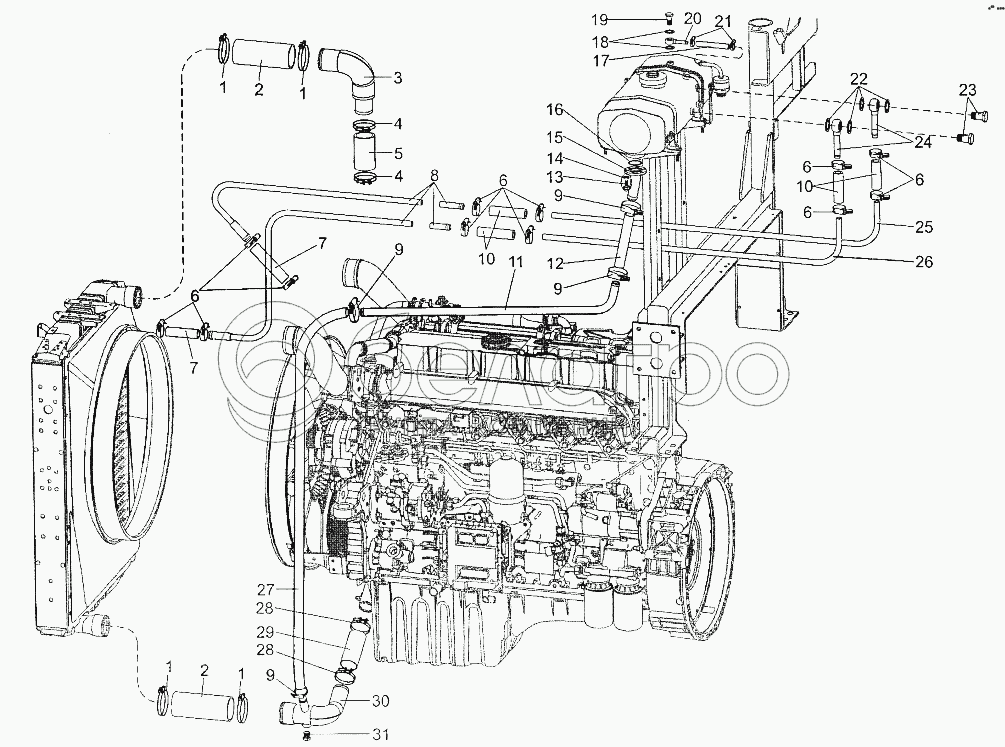 Каталог запасных частей к технике: МЗКТ-700600-011. Установка трубопроводов системы охлаждения двигателя
