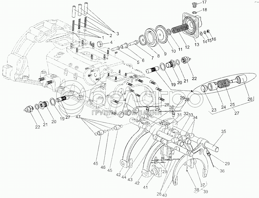 Каталог запасных частей к технике: МЗКТ-700600-011. Установка вилок переключения передач