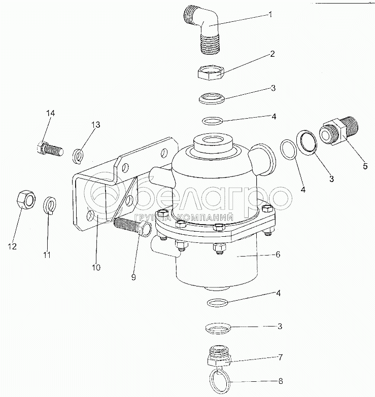 Каталог запасных частей к технике: МЗКТ-700600-011. Установка влагомаслоотделителя
