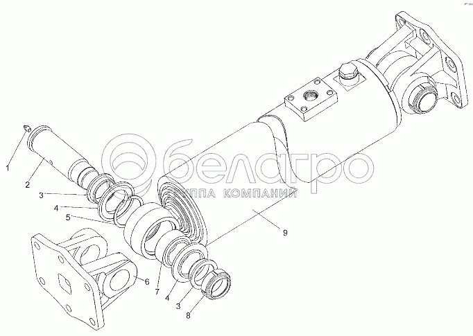 Каталог запасных частей к технике: МЗКТ-7401. Гидроцилиндр с кронштейнами 6527-8603008