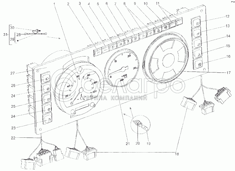 Каталог запасных частей к технике: МЗКТ-7401. Панель приборов двигателя 7429-3800001